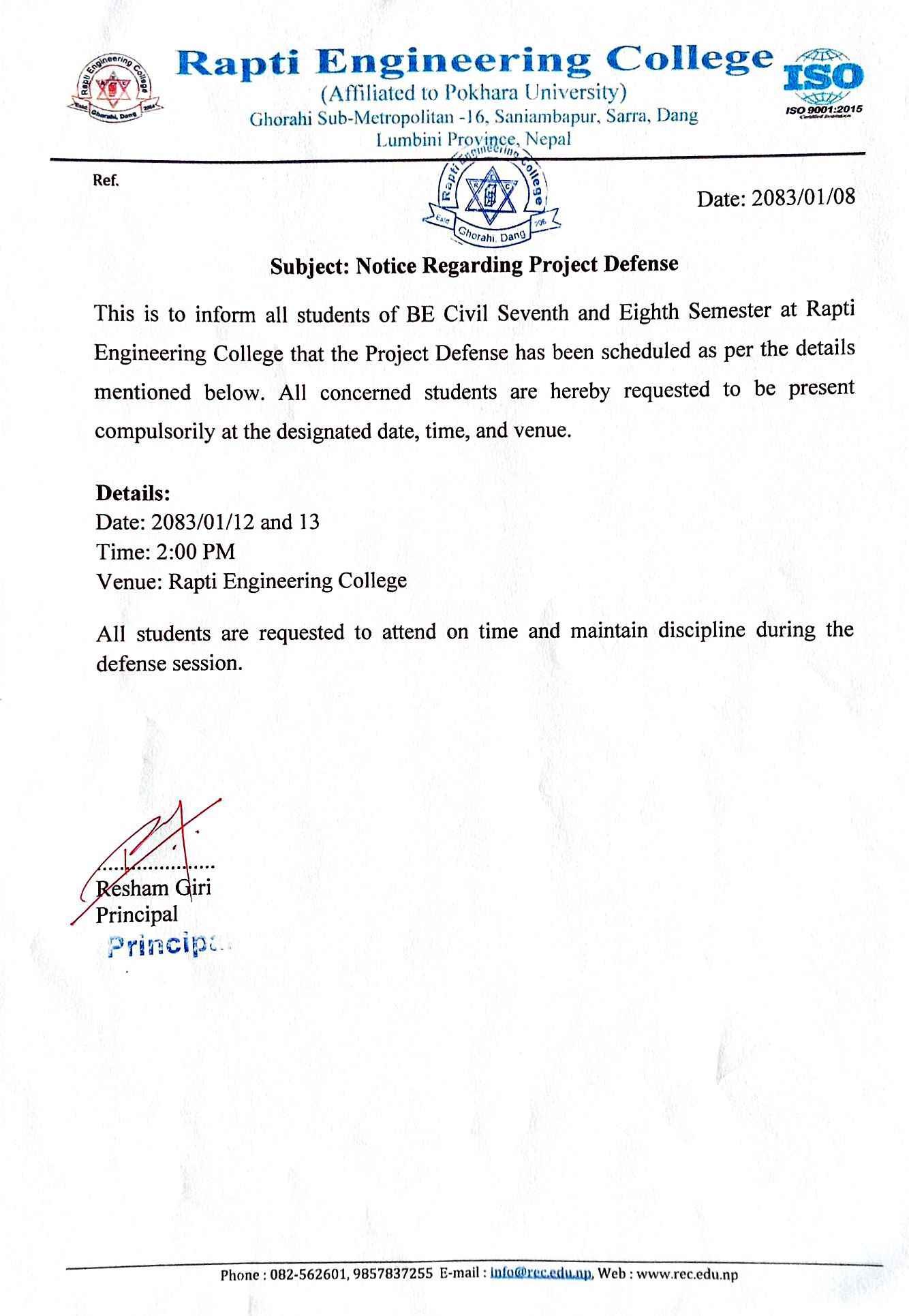 By Rapti Engineering College Genereal Notice